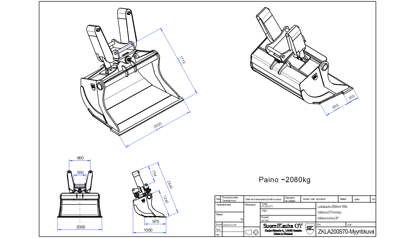 Kallistuva luiskakauha 18-30tn koneisiin, leveys 2000mm.