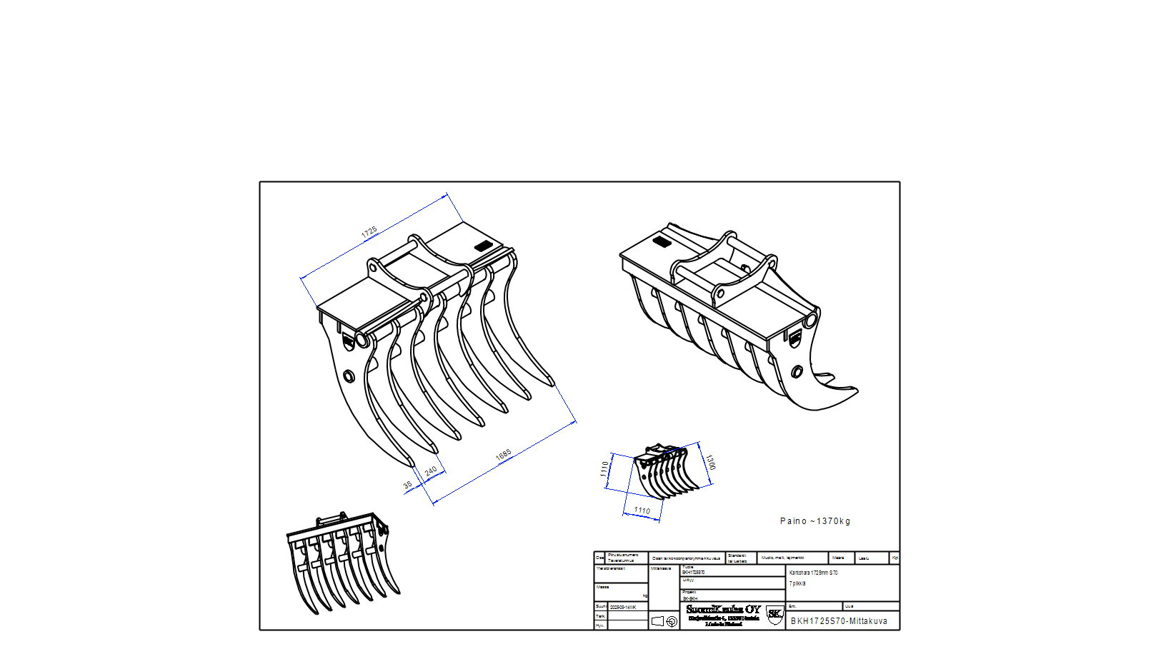 Mitat 770 x 1725 x 1550 mm (syvyys x leveys x korkeus)